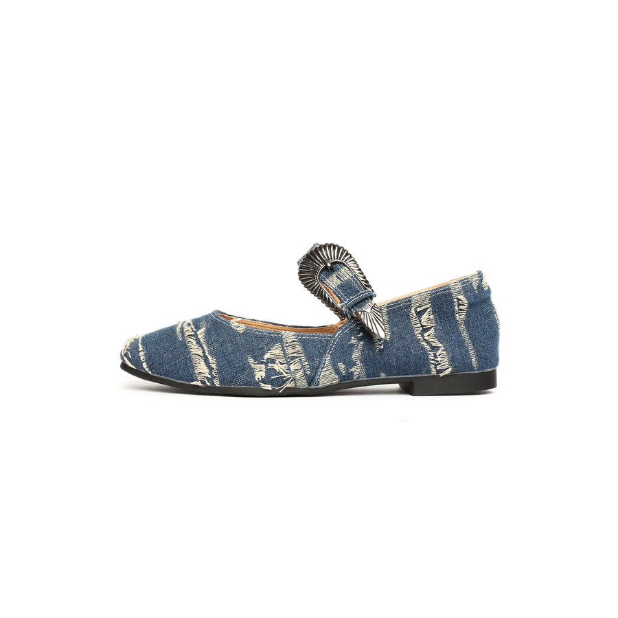 全新Denim Series-Denim Core面世,集復古與另類文化氣息於一身。Kannon Mary Jane 採用Destroy wash洗水工藝技術,塑造出磨損及流蘇之視覺效果,配合精緻復古五金扣,體現其軟硬之間碰撞的另類美感。